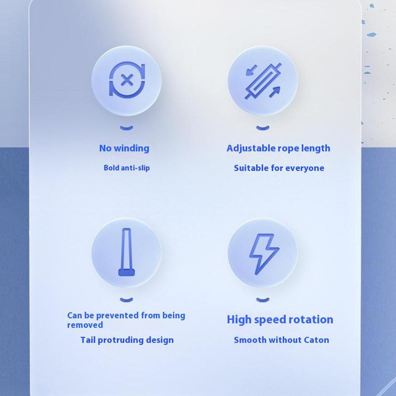Hopprepet är utformat för smidig och bekväm användning under regelbundna hoppningspass. Den trasselfria konstruktionen bidrar till att minska avbrott, medan handtagen har ett förtjockat halkskydd för bättre kontroll. Handtagens ändar har också en upphöjd halkskyddsdesign som minskar risken för att de glider vid snabbare rörelser, vilket gör träningen säkrare och stabilare.