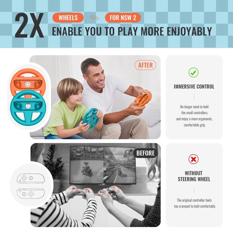 JYS-NS2261-paketet ger omedelbar racingkänsla utan dyr kringutrustning. Två hjul innebär att du och en vän kan hoppa direkt in i tävlingsspel, medan den fjäderlätta, resevänliga designen gör att du kan tävla var som helst. Slitstark ABS håller din Joy-Con säker, och det verktygsfria inskjutningsfästet innebär noll installationsproblem - bara klicka, tävla, upprepa.