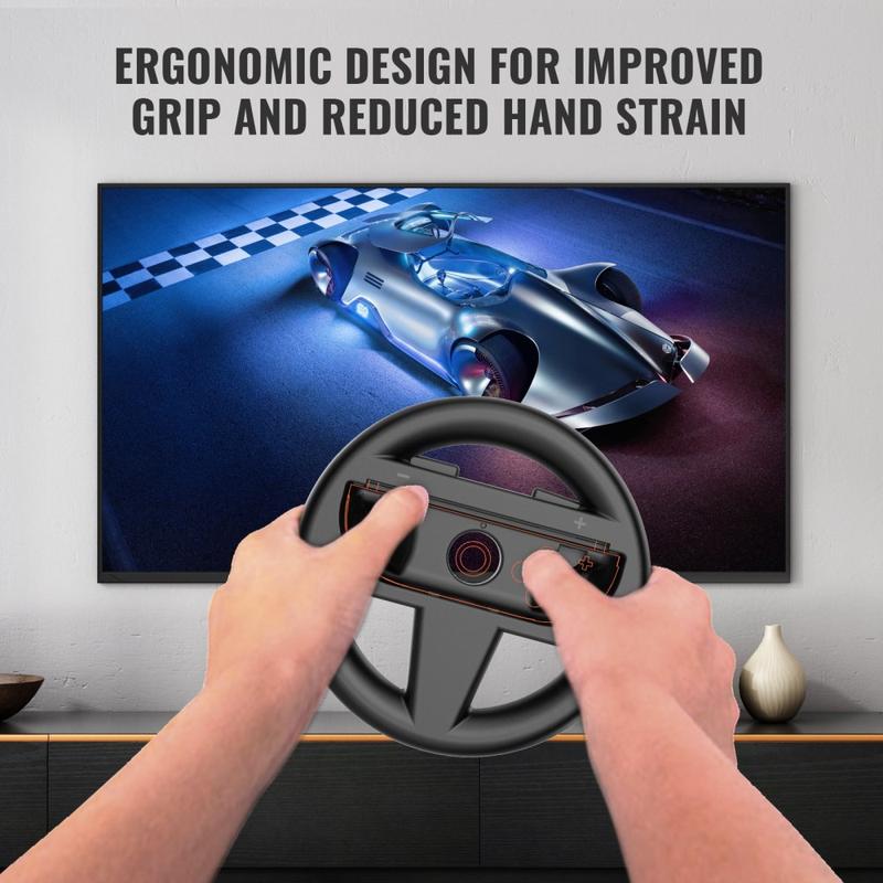 Förvandla varje varv till en spännande åktur med den här vänster- och högerrattuppsättningen som på några sekunder förvandlar dina Joy-Con-kontroller till riktiga racerbilar.