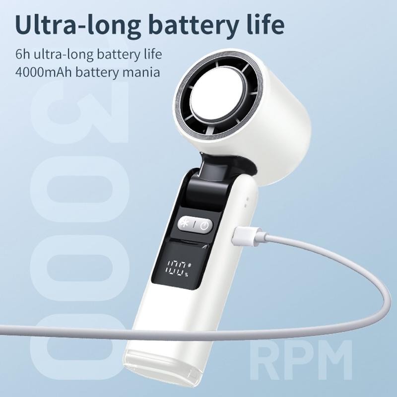 K-801 Handhållen fläkt för kallkomprimering - bärbar kylare med 100 hastigheter, digital batteridisplay och halvledaris-teknik, USB-C uppladdningsbar