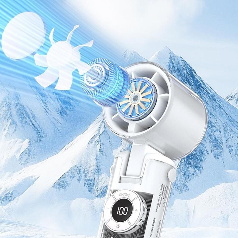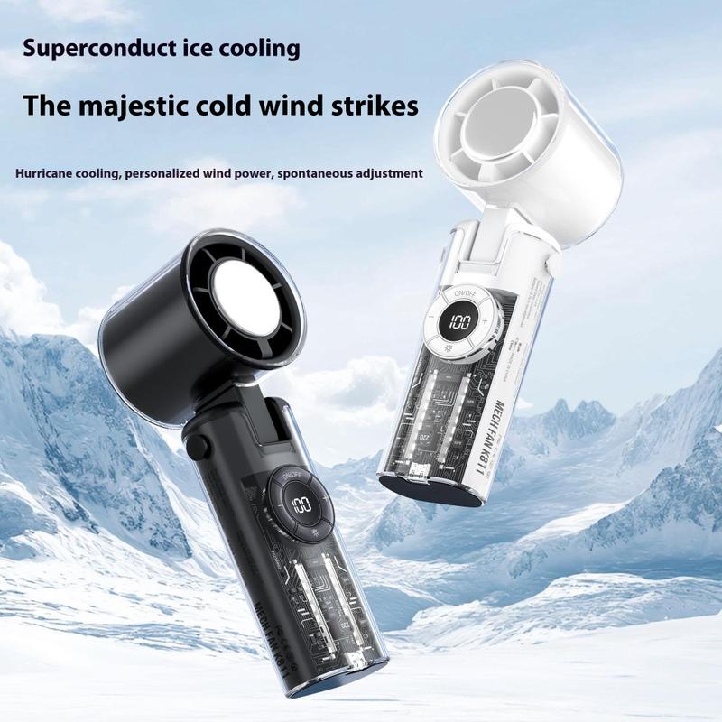 K-811 Transparent Mecha handhållen fläkt - 100-hastighet vikbar bärbar kylare med halvledar-iskompressor och LED-ficklampa, uppladdningsbar