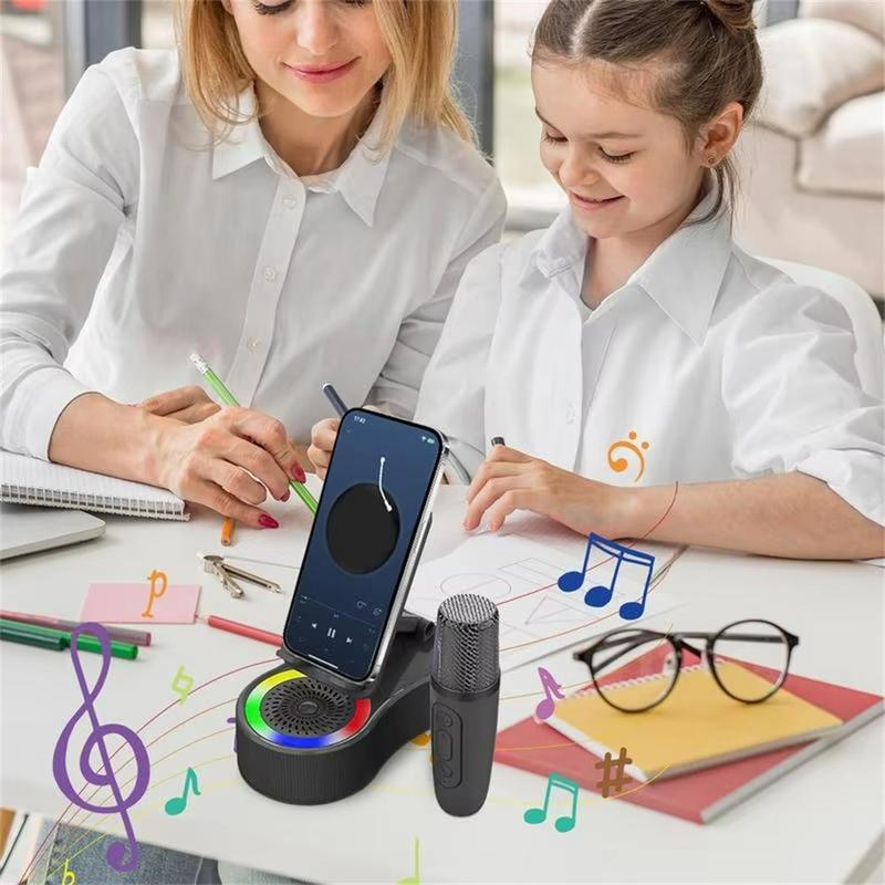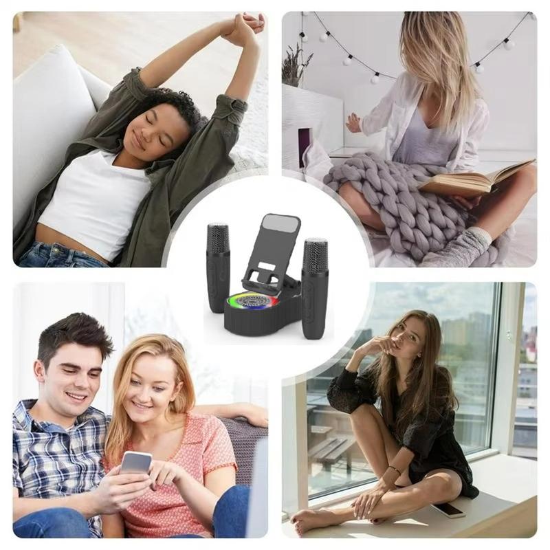 K500 Roterande telefonställ med Bluetooth 5.3-högtalare och 2 trådlösa karaokemikrofoner