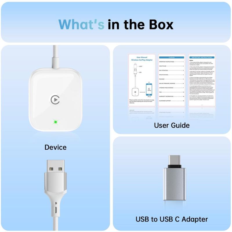 Uppgradera din körupplevelse med Wireless CarPlay Adapter, som är utformad för att omvandla ditt trådbundna CarPlay-system till en trådlös anslutning. Njut av alla funktioner i Apple CarPlay utan krångel med kablar. Plug & Play-installationen gör det enkelt att installera, så att du kan använda din iPhones funktioner sömlöst via bilens display, pekskärm och rattkontroller.