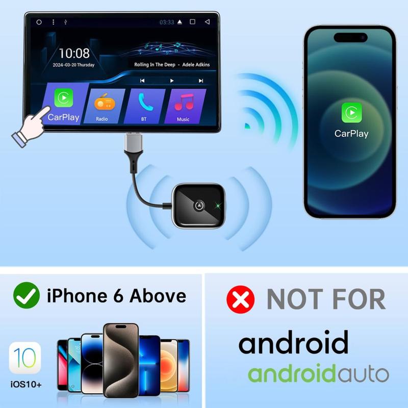 - Stöd för trådlös CarPlay - Konverterar trådbunden CarPlay till trådlös, vilket gör din körupplevelse mer bekväm