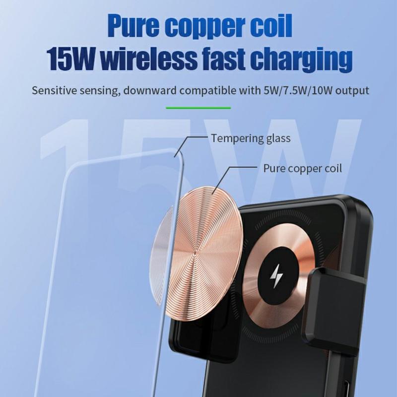 YR-1 3-i-1 Wireless Power Bank är idealisk för dem som söker en multifunktionell enhet som erbjuder laddning, telefonhållning och fotografering. Dess högkapacitetsbatteri och snabba laddning gör den till ett pålitligt tillbehör för vardagsbruk och resor.