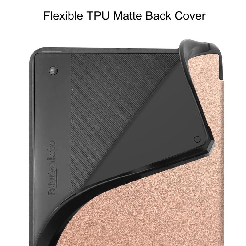 Detta skal är tillverkat av högkvalitativt polyuretan och TPU-material och har ett simpelt men fashionabelt utseende. Det är tillverkat för att skydda din Kobo Elipsa 2E och har ett origami-stativ som kan ge dig flera olika vinklar för att titta på videor och skriva meddelanden på ett bekvämare sätt. Tack vare den intelligenta funktionen för uppvakning/viloläge kommer detta foliofodral automatiskt att slå på/av skärmen när fodralet öppnas eller stängs.