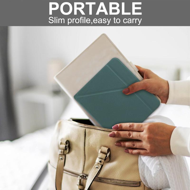 Detta skal är tillverkat av högkvalitativt polyuretan och TPU-material och har ett simpelt men fashionabelt utseende. Det är tillverkat för att skydda din Kobo Libra 2 och har ett origami-stativ som kan ge dig flera olika vinklar för att titta på videor och skriva meddelanden på ett bekvämare sätt. Tack vare den intelligenta funktionen för uppvakning/viloläge kommer detta foliofodral automatiskt att slå på/av skärmen när fodralet öppnas eller stängs.