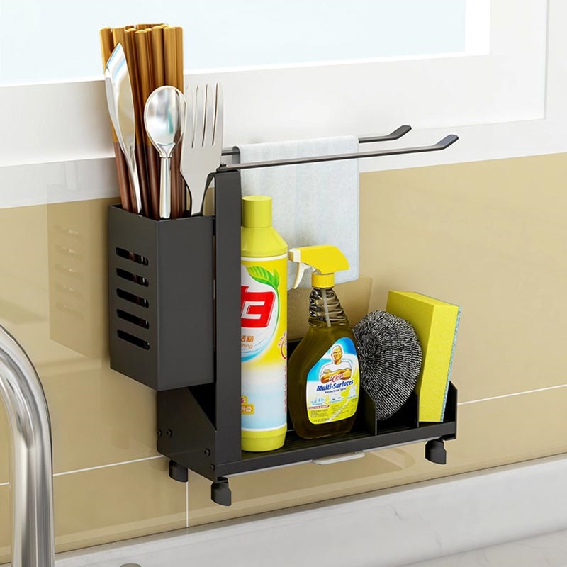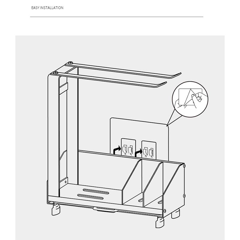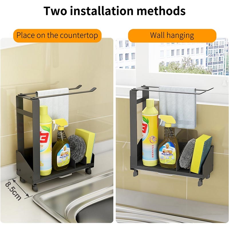 Arrangören är tillverkad av hållbart aluminium och kolstål och erbjuder långvarig stabilitet och motståndskraft mot dagligt slitage. Den kräver ingen installation - placera den helt enkelt på bänken eller häng upp den efter behov. Den kompakta strukturen passar de flesta diskbänksområden, vilket gör den till en idealisk uppgradering för kök, diskbänkar och kompakta bostadsutrymmen.