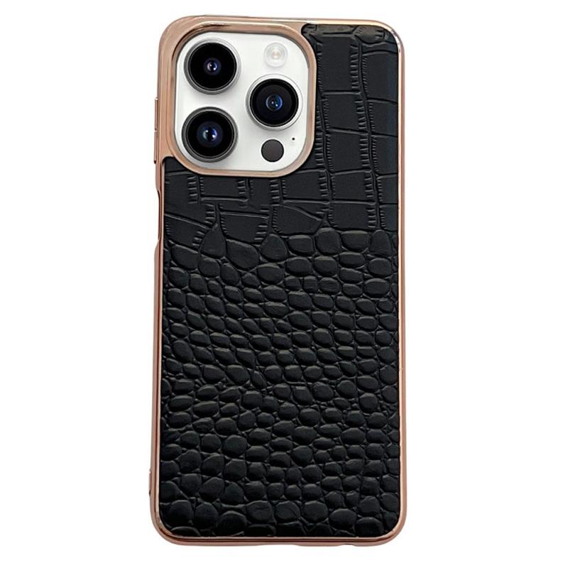 • För iPhone 14 Pro Crocodile Texture Nano galvanisering Äkta kohudsläderbelagd TPU+PC-skal