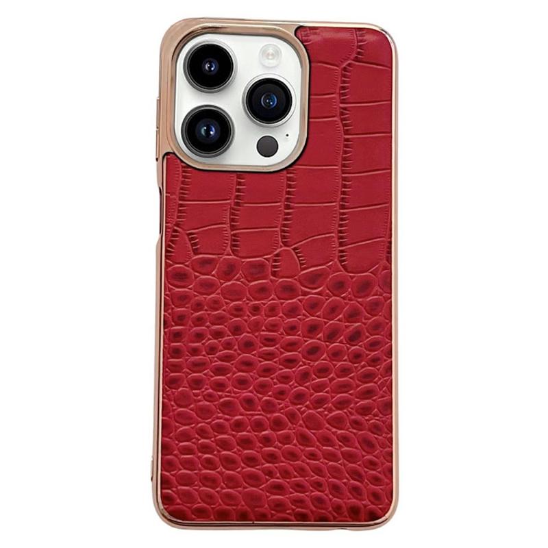 För iPhone 14 Pro Crocodile Texture Nano galvanisering Äkta kohudsläderbelagd TPU+PC-skal