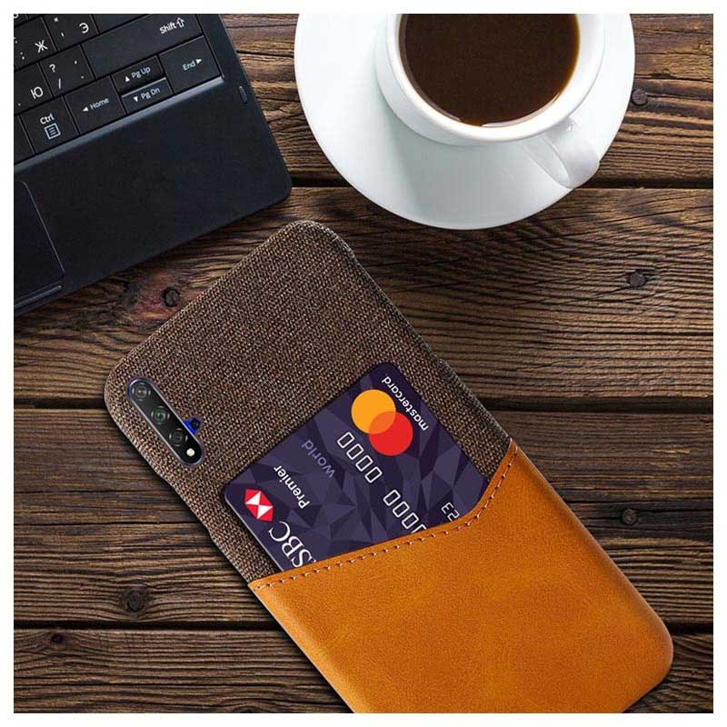 KSQ Huawei Nova 5T, Honor 20/20S Skal med Kortficka - Kaffe