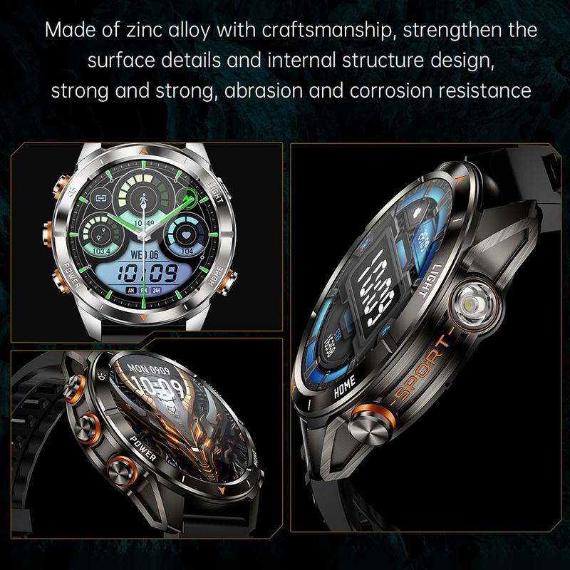 • KT80 Sports Smart Watch - 3ATM vattentät, Bluetooth-samtal, 1.46" HD-pekskärm, integrerad ficklampa