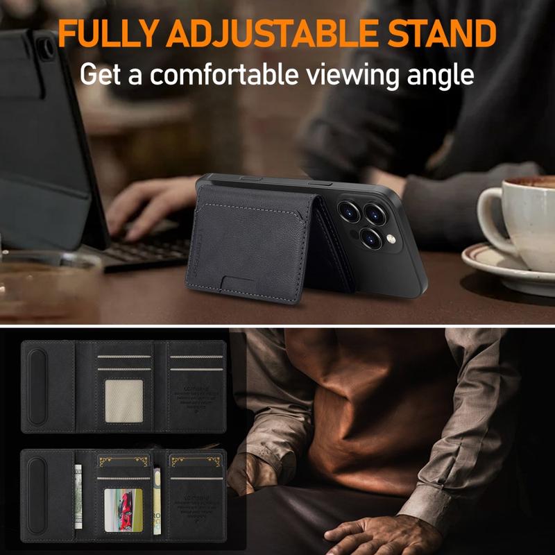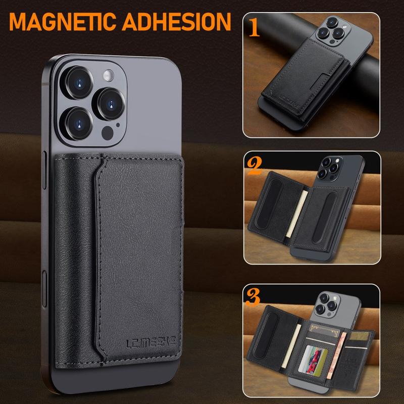 LC.IMEEKE Magnetisk korthållare med kickstand-funktion - tunn plånbok, säkert grepp, omedelbart stativ