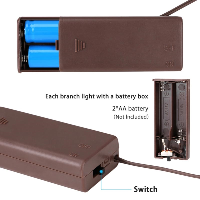 Dessa 20-LED-simuleringslampor för trädgrenar ger ett varmt och förtrollande sken till alla utrymmen. De är utformade med böjbara grenar och drivs säkert av två AA-batterier, så att de kan formas fritt för att skapa din perfekta look. Den mjuka belysningen förhöjer blomsterarrangemang, julskyltningar, fönsterdekorationer och inredningsdetaljer med enkel charm. Plastkonstruktionen är lätt men ändå hållbar, vilket gör dem lämpliga för inomhusinredning och utomhusbruk i täckta utrymmen.