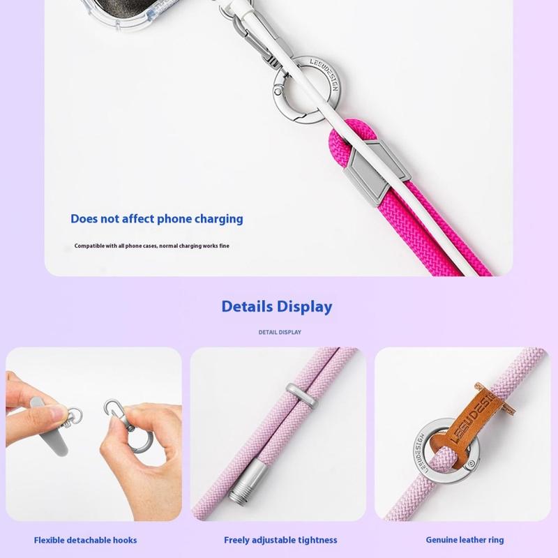 Håll din telefon säker och ha händerna fria med LEEU DESIGN Crossbody Phone Lanyard. Denna 120 cm långa justerbara rem är tillverkad av högkvalitativ polyester och rostfritt stål och kombinerar hållbarhet, komfort och stil. Dess crossbody-design gör att du kan bära din smartphone säkert och bekvämt, oavsett om du reser, arbetar eller är på språng. Med en stark fästanordning och ett modernt utseende är det den perfekta vardagstillbehören för funktionalitet och mode.