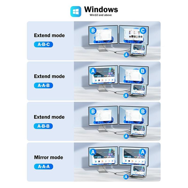 Den här adaptern har två HDMI-utgångar som stöder utökade och speglade visningslägen. En port stöder 4K-upplösning vid 30 Hz (via TUTULINK-drivrutinen), medan den andra levererar 1080P Full HD, vilket möjliggör flexibla skärmkombinationer för arbete, presentationer eller underhållning.
