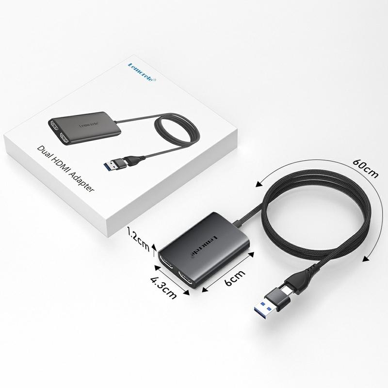 Lemorele HD10 USB-A/USB-C till dubbel HDMI-adapter - omvandlare för dubbla skärmar med 4K- och 1080P-utgång