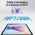 Systemet använder en 5 GHz WiFi-anslutning för mer stabil prestanda och minskad störning jämfört med trånga 2,4 GHz-miljöer. Med en praktisk trådlös räckvidd på upp till 30 m (beroende på siktlinje och miljö) kan du placera din TV eller projektor där den ser bäst ut - utan att behöva dra långa HDMI-kablar genom rummet.
