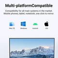 P1000 är kompatibel med Android, iOS, Windows och macOS och har stöd för Miracast- och P2P-teknik. Detta möjliggör sömlös skärmspegling över flera enheter, vilket gör den lämplig för både privat och professionell användning.