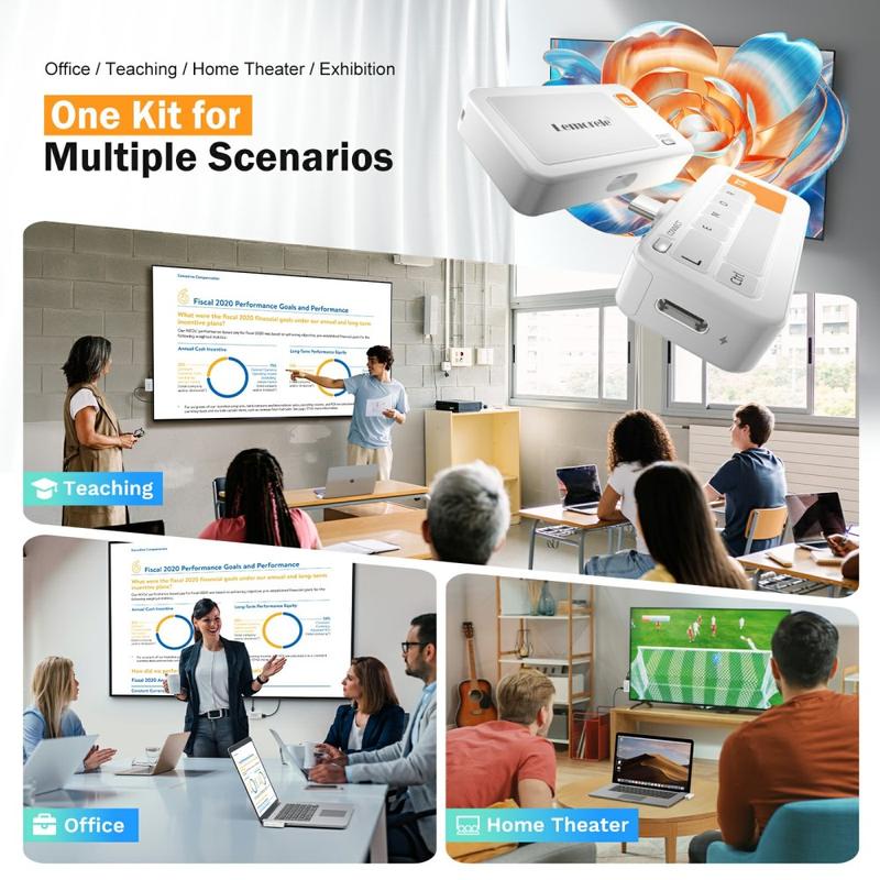 Lemorele P400 trådlöst skärmspeglingssystem är utformat för att leverera snabb, stabil och kabelfri skärmdelning från USB-C-enheter till HDTV-skärmar. Med hjälp av trådlös punkt-till-punkt-överföring möjliggörs smidig spegling för presentationer, möten, utbildning och hemunderhållning utan att förlita sig på appar, drivrutiner eller extern programvara.