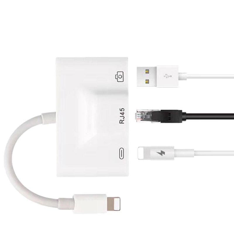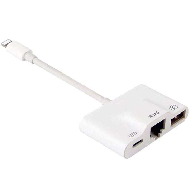 3-i-1 Lightning 8-polig / RJ45 Ethernet LAN Nätverksadapter med USB 2.0 / Lightning 8-polig port