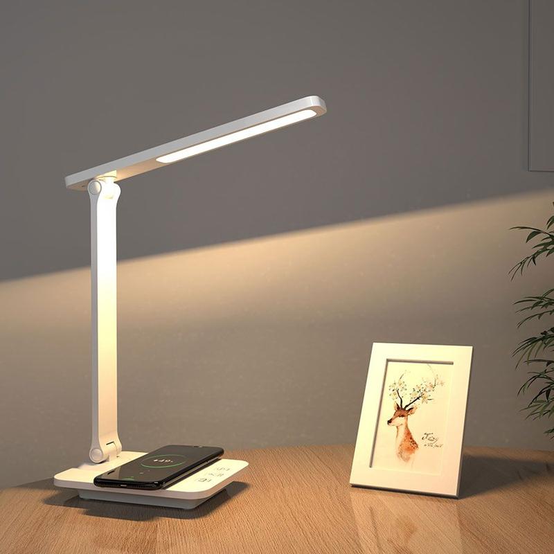 Vi presenterar vår senaste LED-bordslampa, en perfekt kombination av elegans och den senaste tekniken. Lampan har utformats med tanke på den moderna yrkesarbetaren och erbjuder både stil och funktionalitet. Den eleganta designen och den integrerade trådlösa laddningen och telefonhållaren gör den till ett måste för alla skrivbord.