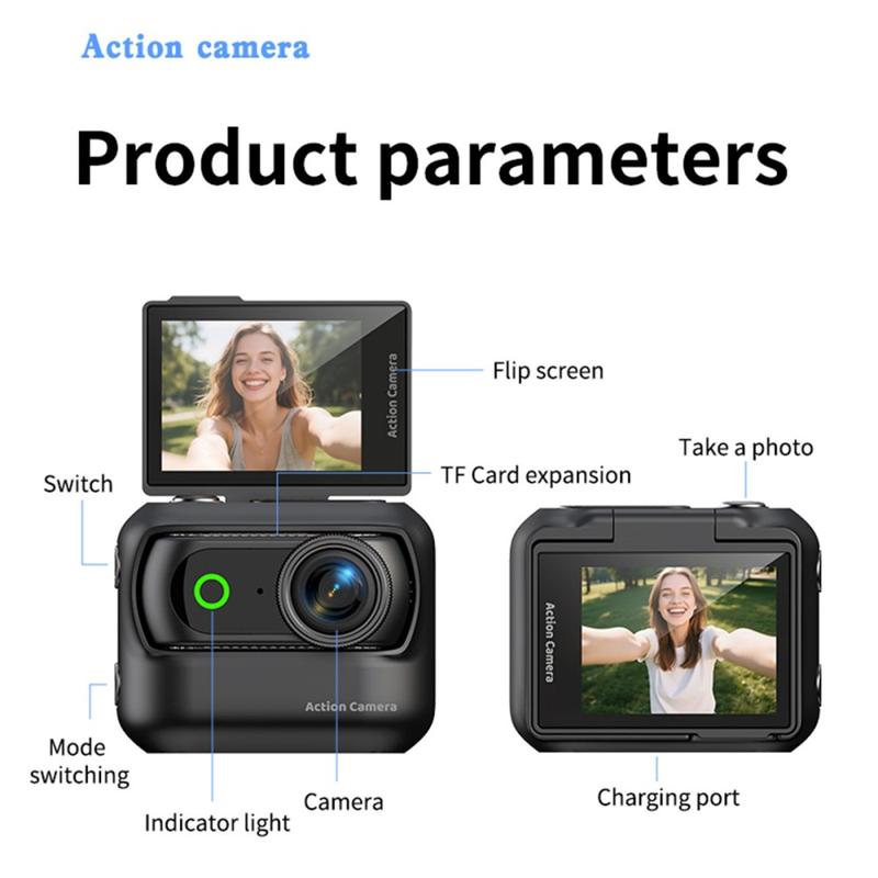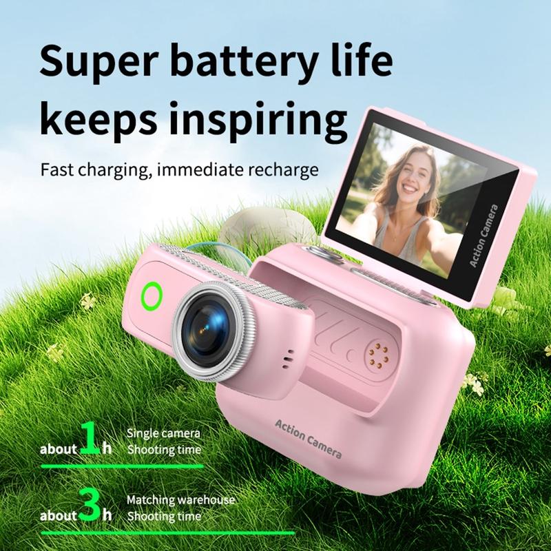 Denna minisportkamera är byggd för flexibilitet och stöder flera fotograferingslägen, inklusive video, foto, slow motion, time-lapse och ND-spegeleffekter, vilket gör den lämplig för både vardaglig inspelning och mer kreativt innehåll. Den bärbara designen gör att du kan fästa den på ett halsband, en keps, en hjälm, ett cykelstyre eller andra kompatibla ytor, medan det utökade batteristödet hjälper dig att filma längre när du är på språng.