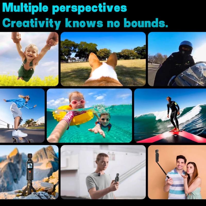 LK2316 Bärbar 4K Ultra HD Actionkamera - Handhållen trådlös inspelare med roterande Gimbal-stabilisering, mörkerseende och IP65 vattentät