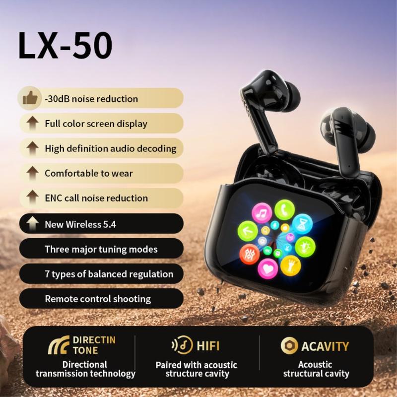 De trådlösa öronsnäckorna LX-50 kombinerar smart kontroll, effektiv brusreducering och omslutande ljud i en modern in-ear-design. Den utmärkande funktionen är den fullfärgs HD-pekskärm som är inbyggd i laddningsfodralet, så att du kan styra inställningar, lägen och funktioner direkt - ingen telefon behövs. Med dubbel brusreducering, stabil Bluetooth 5.4-anslutning och en bekväm ergonomisk passform är LX-50-öronsnäckorna utformade för vardagslyssning, samtal och bekvämlighet när du är på språng.