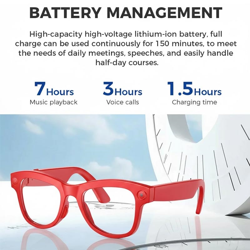 De smarta glasögonen M01S AI kombinerar intelligent översättning, HD-inspelning, uppslukande ljud och röstinteraktion i en elegant bärbar enhet. Glasögonen är utrustade med en Sony IMX219 500W-kamera som tar högkvalitativa foton och smidig 1080p 30fps-video. Oavsett om du dokumenterar din dag eller spelar in handsfree-innehåll levererar M01S klarhet och stabilitet med inbyggd videooptimering.