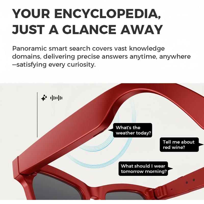AI-drivna funktioner - inklusive objektigenkänning, röstkommandon, dialoginteraktion och realtidsöversättning - ökar bekvämligheten och öppnar upp för sömlös kommunikation mellan olika språk. Dubbla högtalare med oberoende förstärkare ger fylligt, klart ljud för både musikuppspelning och samtal, medan brusreducerande mikrofoner säkerställer skarp röstkvalitet.