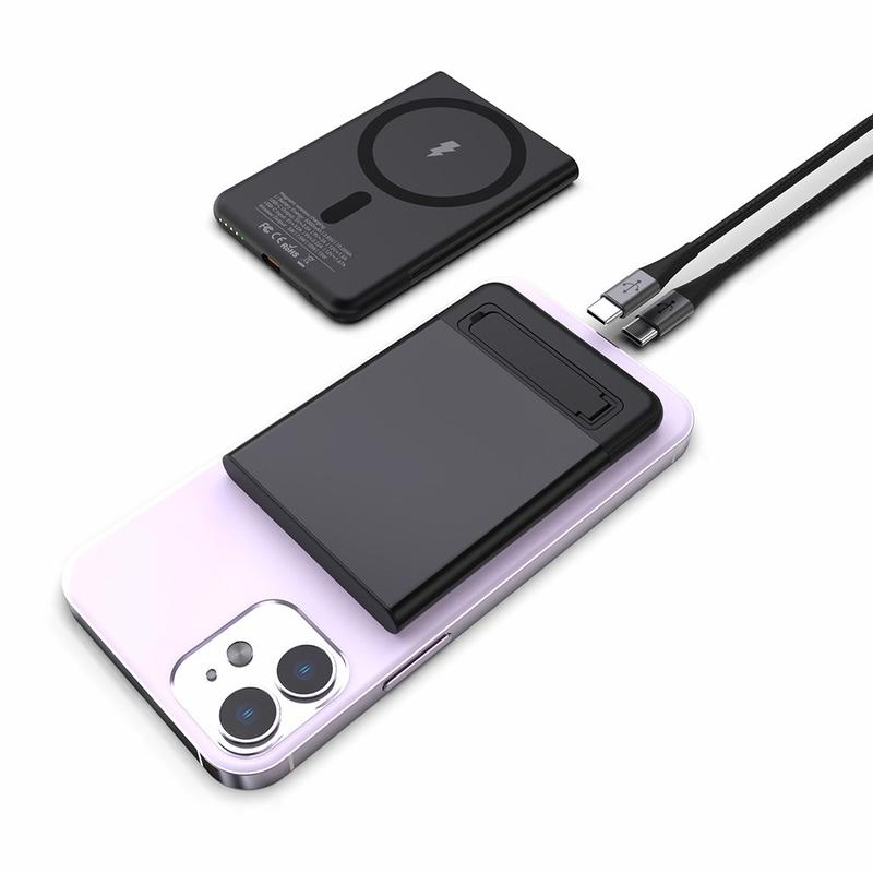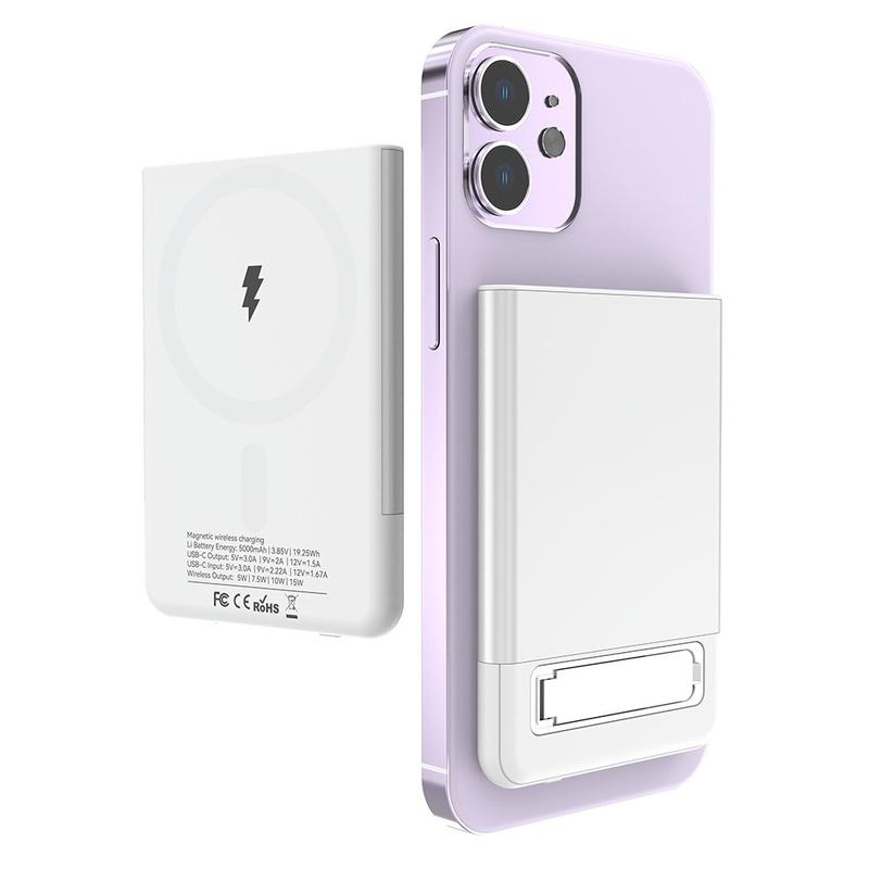 Ultratunn MagSafe trådlös laddare i metall med kickstand för iPhone 12/13/14/15/16/17/Air - 15W/5000mAh