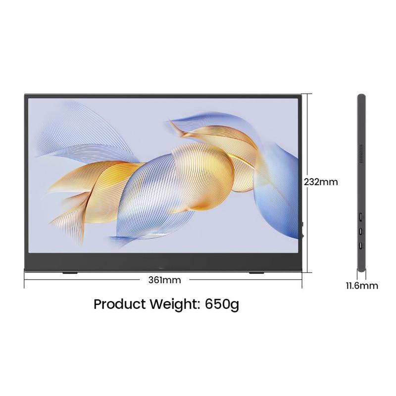 Bärbara bildskärmar som M156F04 använder IPS-teknik, vilket ger 178° breda betraktningsvinklar och levande färgnoggrannhet - vilket garanterar en konsekvent, verklighetstrogen bild oavsett var du sitter.
