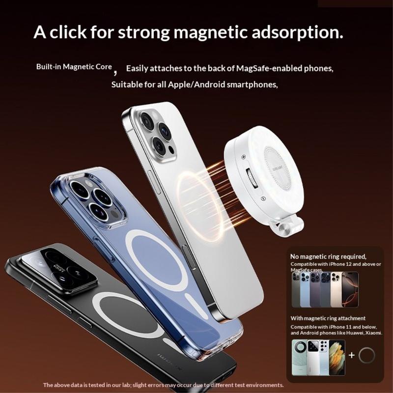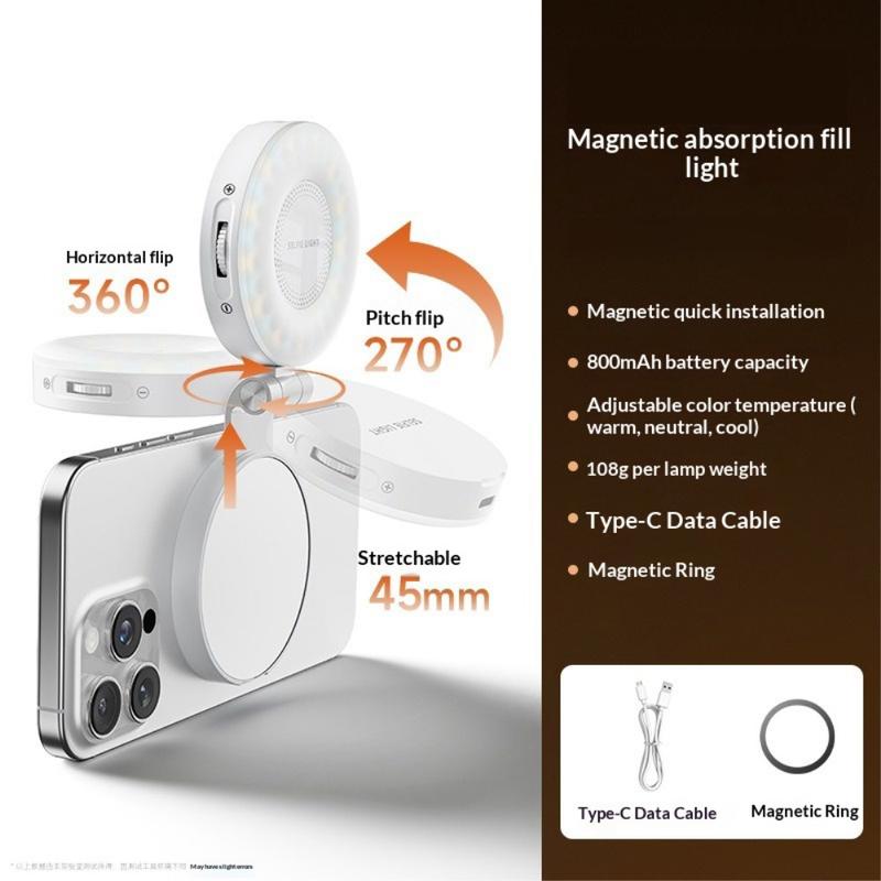 M28 magnetisk pocket LED fill light är ett kompakt, handhållet belysningsverktyg som är utformat för kreatörer, fotografer och alla som vill ha perfekt belysning när de är på språng. Det inbyggda LED-systemet stöder tre justerbara färgtemperaturer, så att du kan finjustera belysningen för varma, neutrala eller kalla toner beroende på scenen. Den integrerade högupplösta spegeln gör det enkelt att förhandsgranska din look eller fotograferingsvinkel i realtid, medan magnetfästet ger enkel montering på smartphones och andra metallytor. Med en lättviktsdesign på 108 g och uppladdningsbart batteri är denna fill light idealisk för selfies, livestreaming, utomhusfotografering och skapande av innehåll för resor.