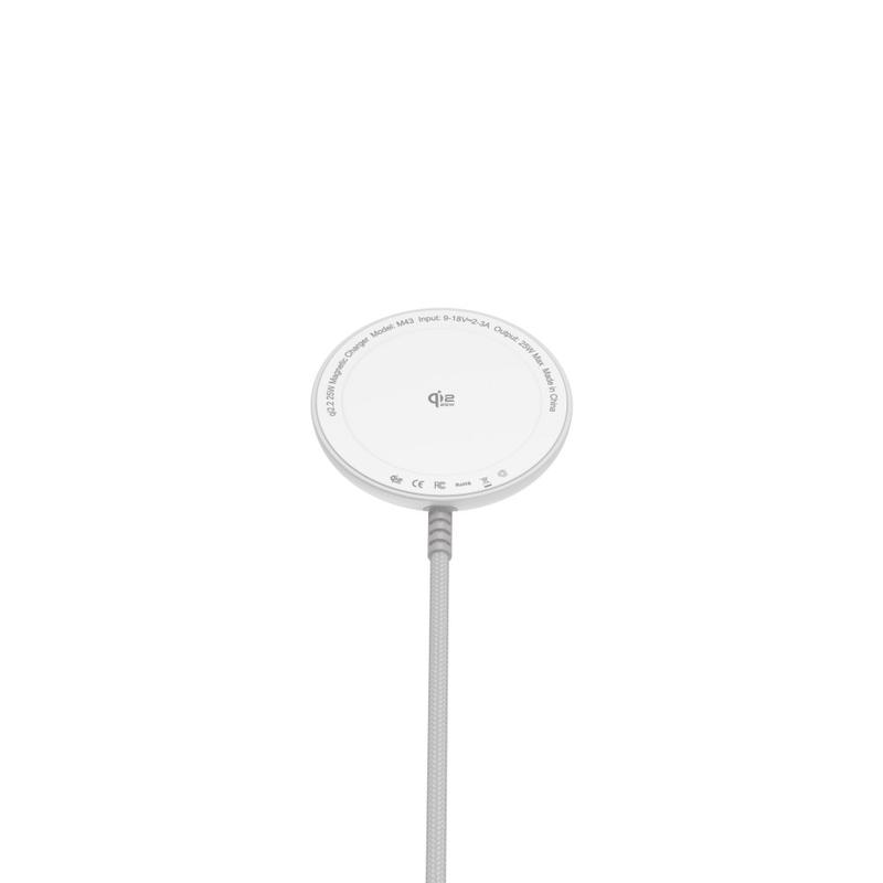 M43 Qi2.2 magnetisk trådlös laddare 25W - snabbladdningsplatta för iPhone 17-12-serien och AirPods, USB-C-flätad kabel 1,2 m