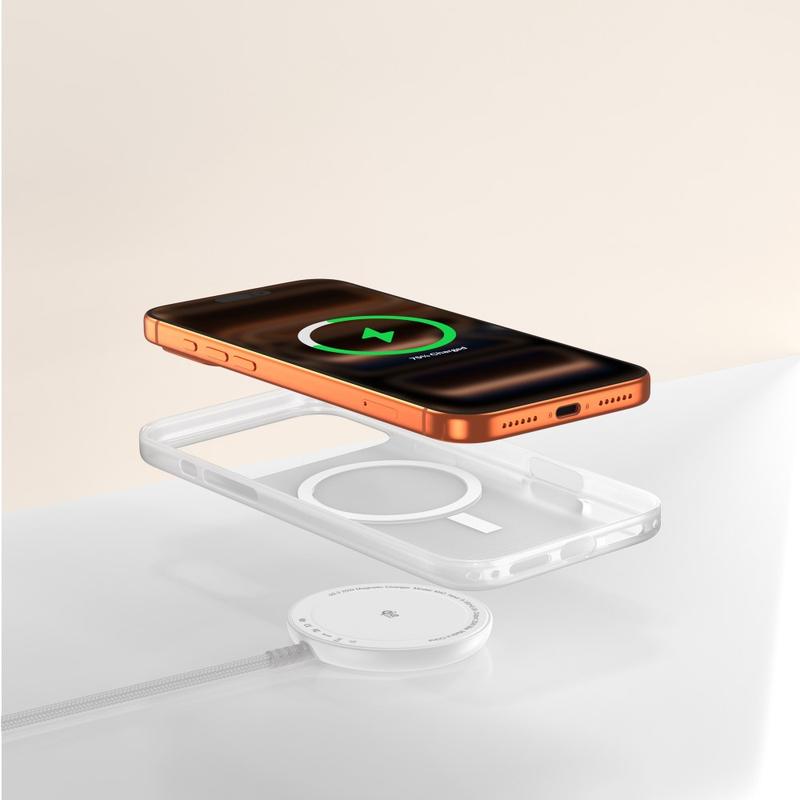 Ladda din iPhone snabbt och bekvämt med den magnetiska trådlösa laddaren M43. Den är utrustad med Qi2.2-teknik och levererar upp till 25W trådlös laddning samtidigt som den upprätthåller en stark magnetisk inriktning för en stabil laddningsanslutning. De inbyggda magneterna riktar automatiskt in din telefon mot laddningsspolen, vilket bidrar till att förbättra effektiviteten och håller din enhet säkert på plats under laddningen.