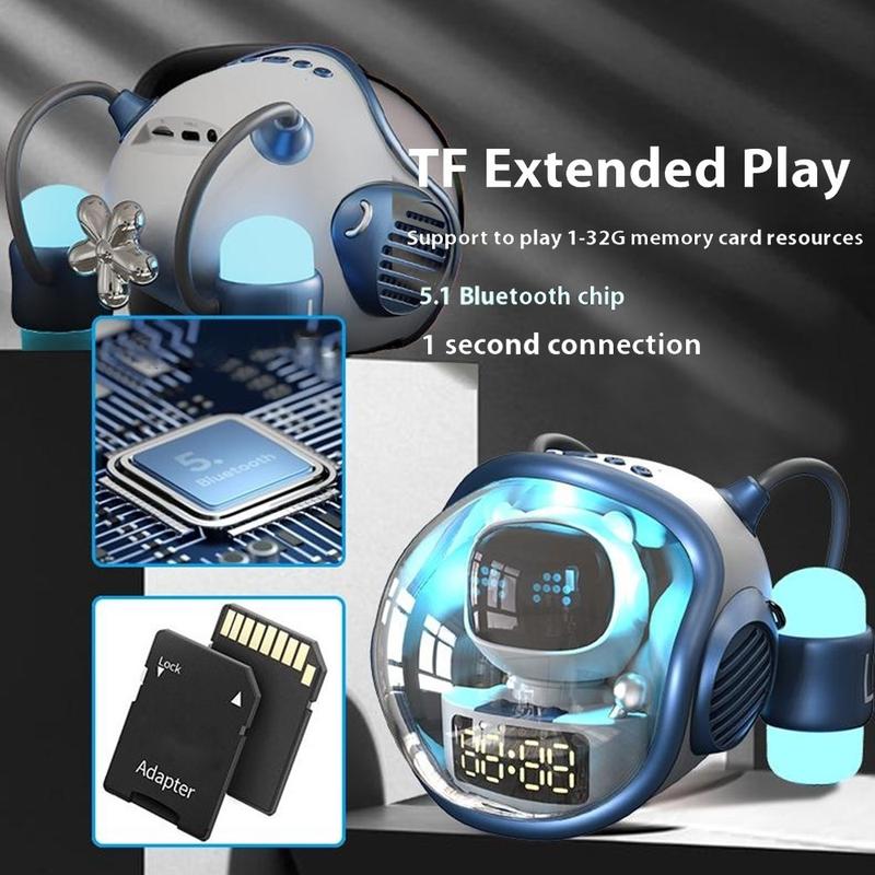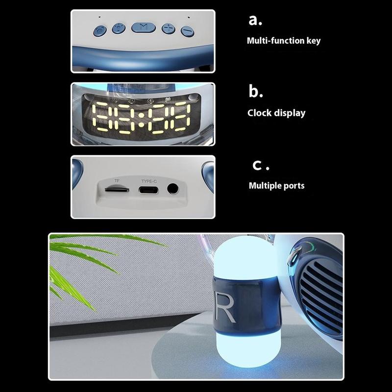 M60 Spaceship Shape AI Bluetooth-högtalare med väckarklocka - dubbla RGB-lampor, TF/FM-stöd
