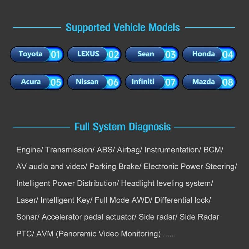 - Full systemtäckning för stora japanska märken: motor, växellåda, ABS, krockkudde, karosskontroll, chassi, ljud