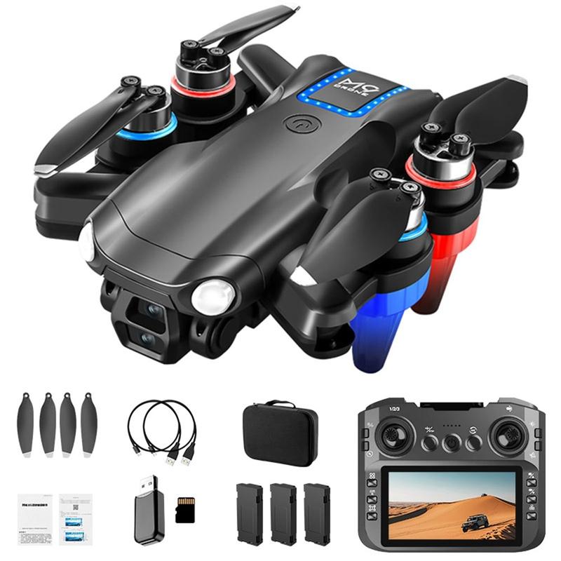M9 FPV-drönare med borstlös motor - hopfällbar quadcopter med dubbla HD-kameror, optiskt flöde, hinderavvärjning, skärmkontroll och 3 batterier