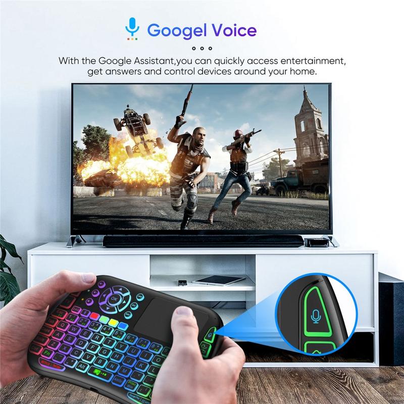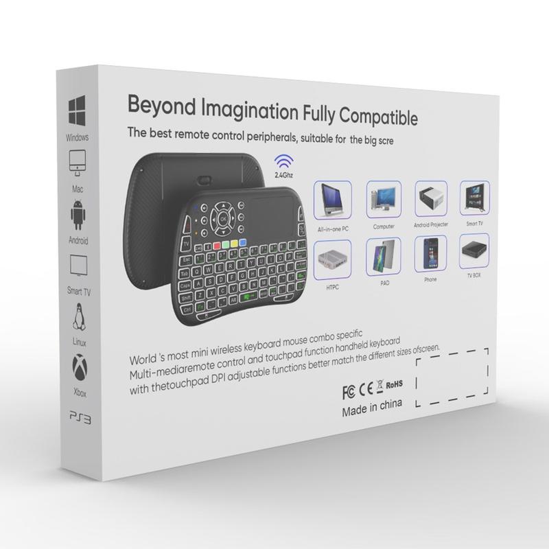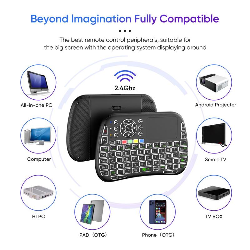 M9 är en utmärkt lösning om du vill ha ett allt-i-ett-fjärrkontrolltangentbord för underhållningssystem. Det ersätter både fjärrkontroll och mus, minskar frustrationen vid skrivning i smart-TV-appar och har färgglad bakgrundsbelysning för användning på natten. Den kompakta handhållna designen gör det bekvämt att använda i soffan eller under resor.