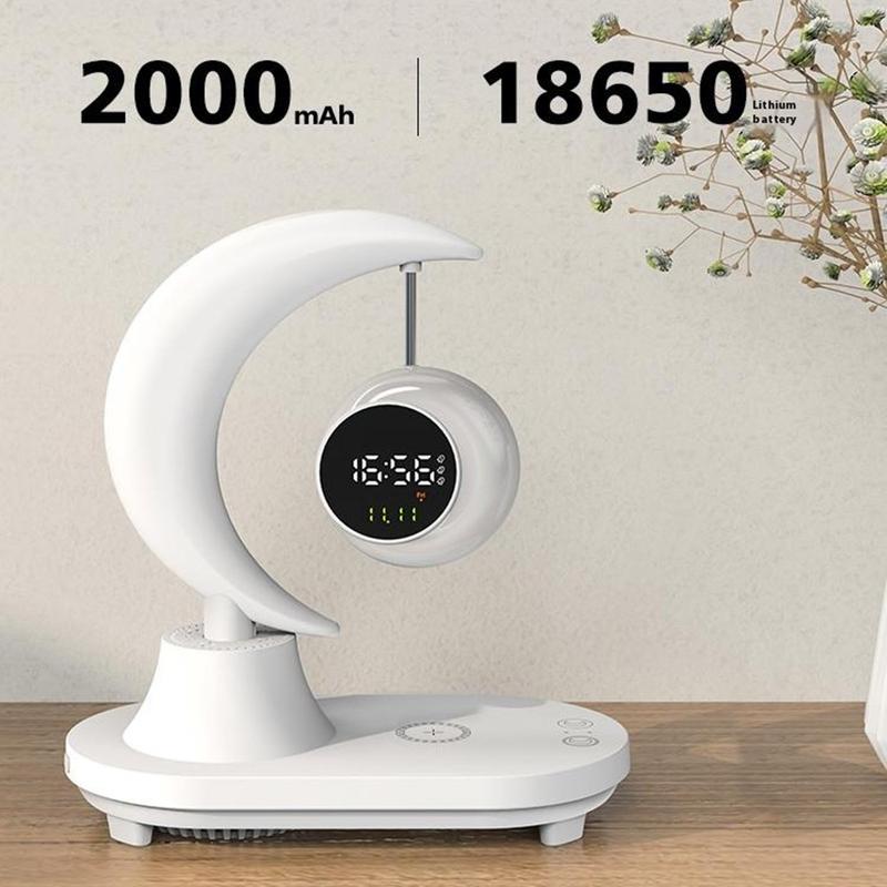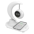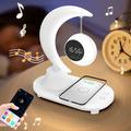 Månformad multifunktionell Bluetooth-högtalare med väckarklocka, sängbordslampa med färgglatt omgivningsljus, 15W trådlös laddare - Högtalareffekt: 10W