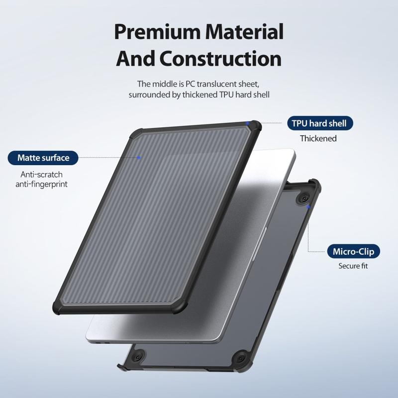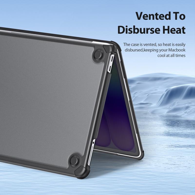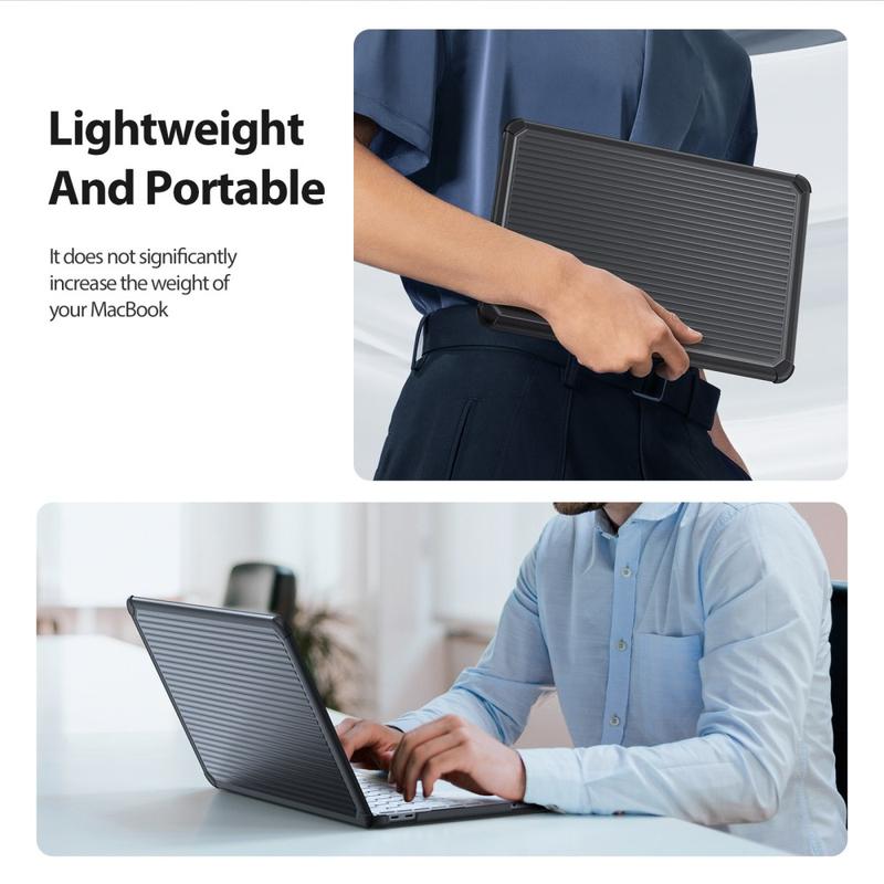 Den precisionsformade designen garanterar en perfekt passform med exakta utskärningar och smidig öppning och stängning. Upphöjda halkskydd på undersidan förbättrar stabiliteten och underlättar luftflödet för bättre värmeavledning, medan mikroklämdesignen håller fodralet säkert på plats och gör det enkelt att sätta på eller ta av vid behov.