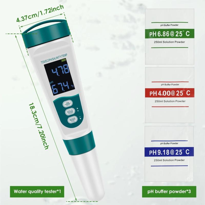 Bär med dig ett komplett laboratorium i fickan. MF51 kombinerar pH-, TDS-, EC- och salthaltssensorer i en lätt penna (183 × 44 × 44 mm), så att du kan bedöma dricksvatten, hydroponiska näringstankar eller akvarieförhållanden på några sekunder. En inbyggd termometer kompenserar avläsningar från 0,1 - 60 °C för tillförlitlig noggrannhet oavsett var du arbetar.