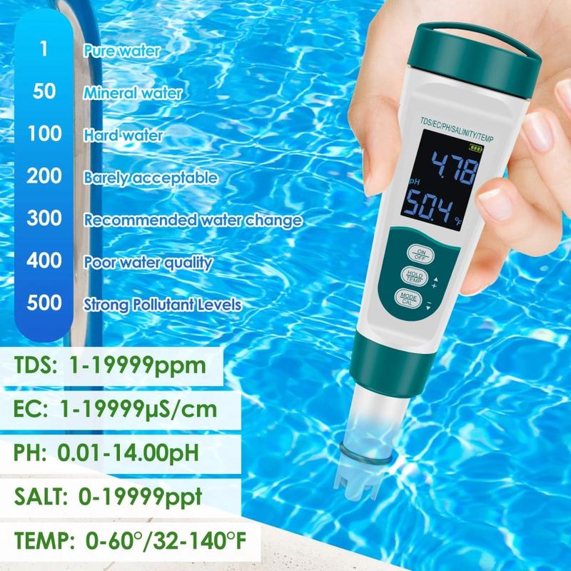 MF51 4-i-1 digital vattenkvalitetstestpenna - pH 0-14, TDS 0-9999 ppm, EC 0-9999 µS/cm & 0-10 % salthalt