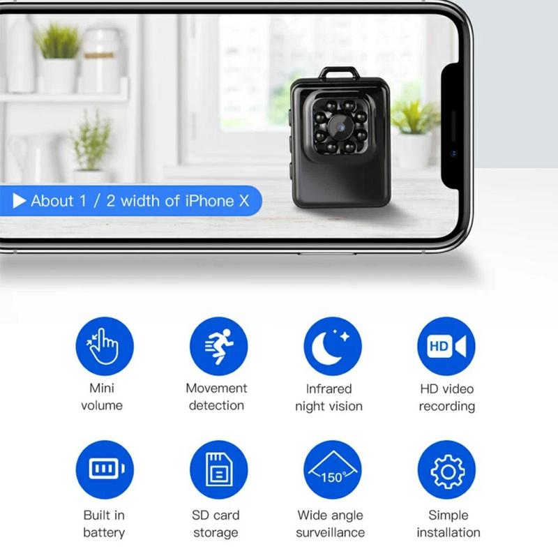1080P Smart kamera med nattseende - uppladdningsbar rörelsedetektor Mini sport- och säkerhetskamera