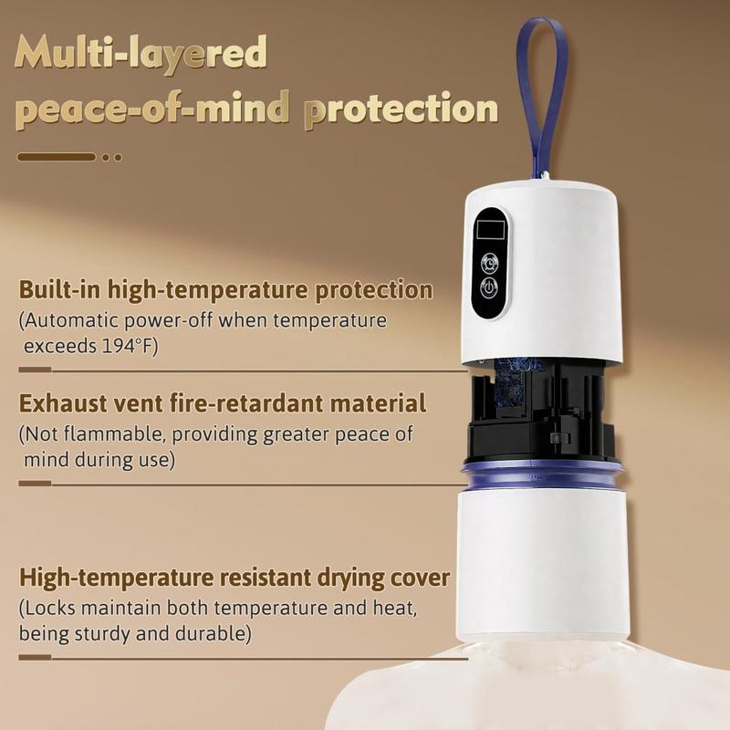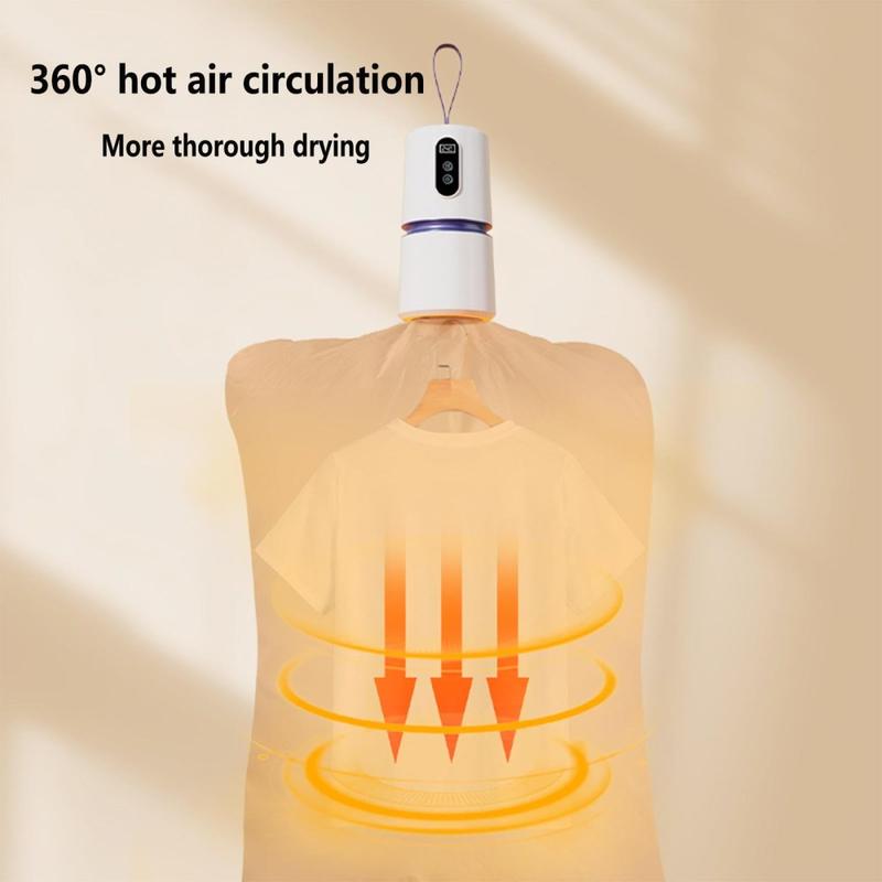 Den här minitorktumlaren erbjuder bärbarhet, säkerhet och effektivitet i en kompakt enhet. Den är idealisk för användare som behöver en pålitlig torkningslösning utan att ta upp utrymme eller förbruka överdriven energi. Den är lätt att använda och resevänlig och passar perfekt in i en modern livsstil.