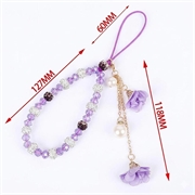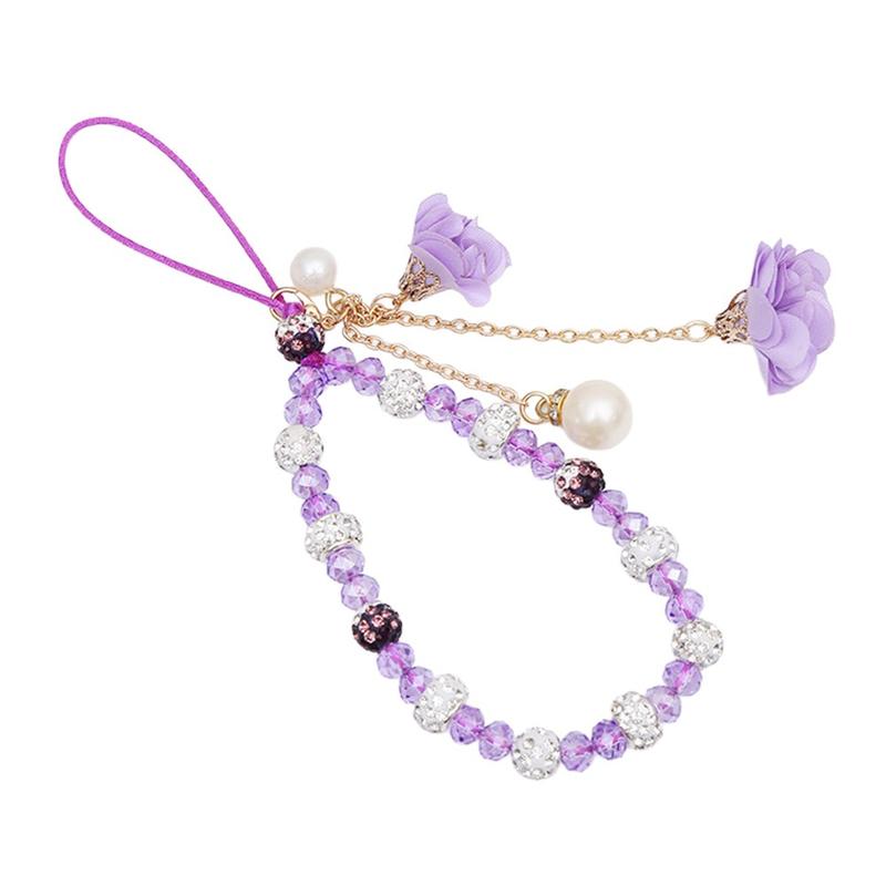 18,7 cm lång mobilrem med kristallpärlor och ros-berlocker - handledsrem och handkedja som mobiltillbehör