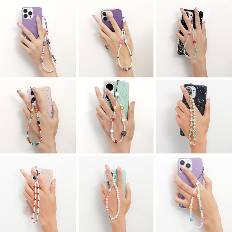 22cm telefonrem med färgglada pärlor - armband i akryl med hänge, tillbehör till mobiltelefonen