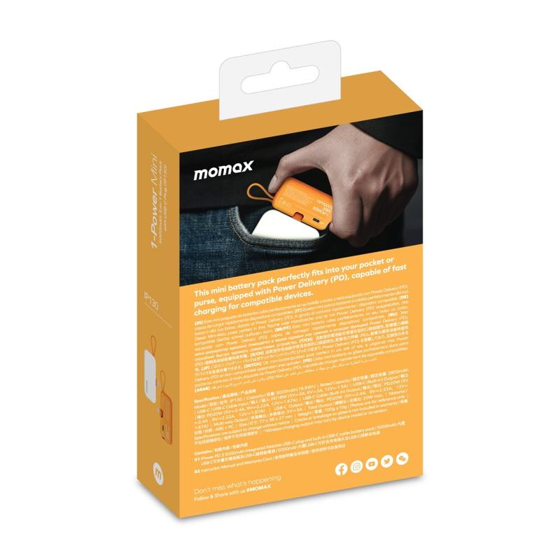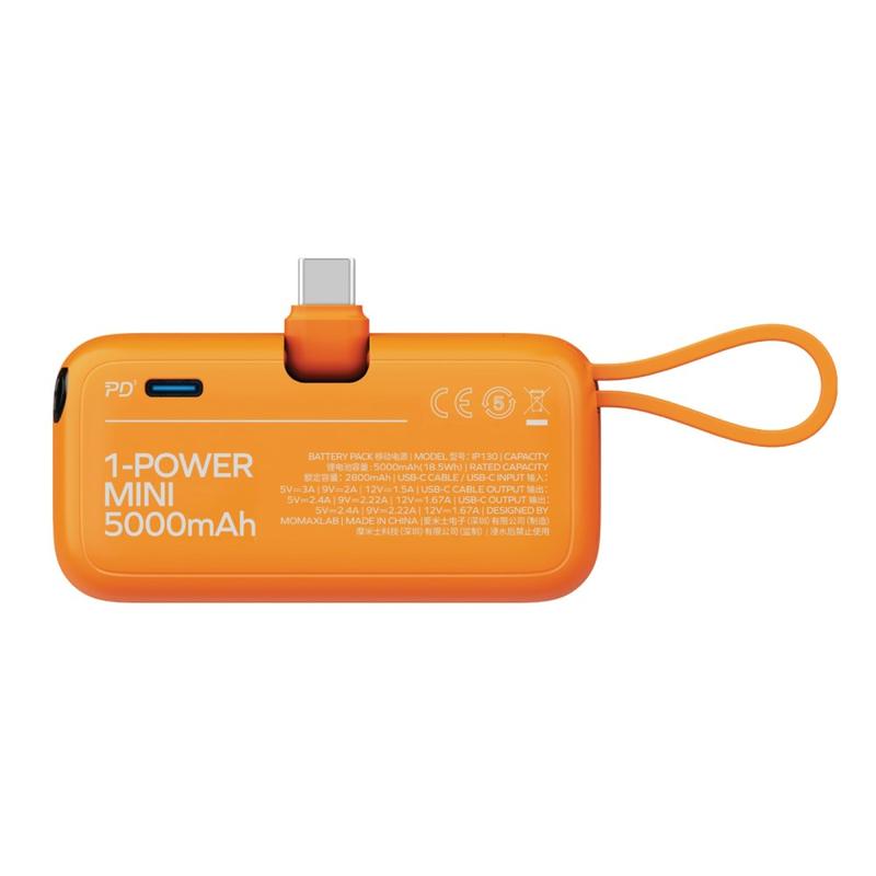 Momax 1-Power Mini Pop Art 5000mAh Power Bank / Bärbar laddare med USB-C-kontakt, USB-C-kabel, USB-C-port - 20W
