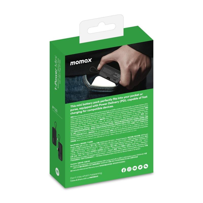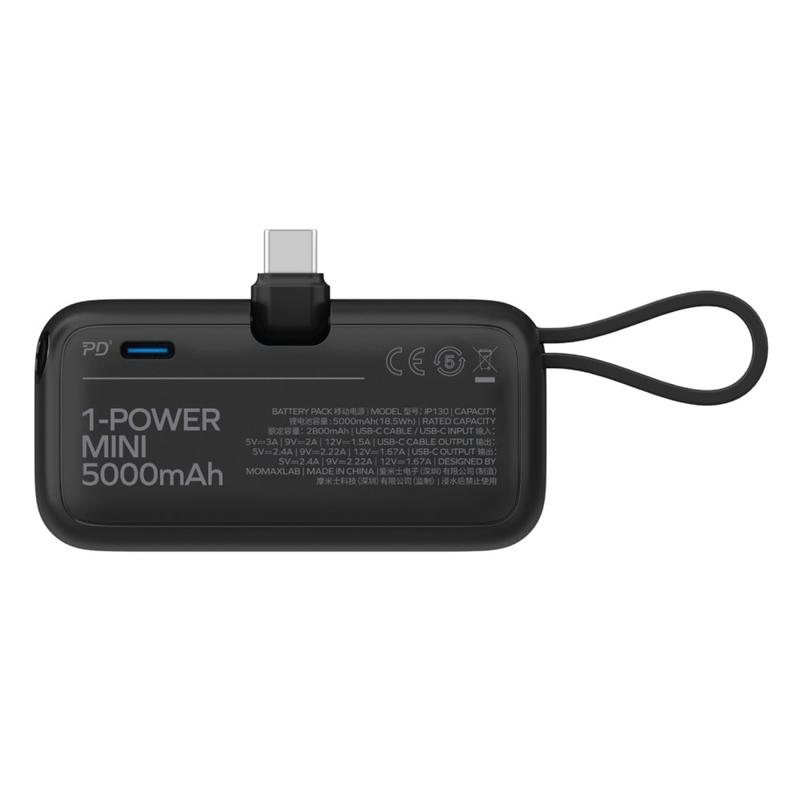 Momax 1-Power Mini Pop Art 5000mAh Power Bank / Bärbar laddare med USB-C-kontakt, USB-C-kabel, USB-C-port - 20W